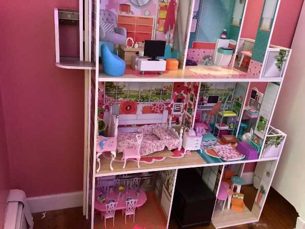 Hi. We have an off-brand Barbie house that needs a new Barbie lover! It is not Matel and has no bells or whistles. This is why we liked it. Made from ikea level wood, it is sturdy and in great condition. You'll need a large SUV trunk or truck to pickup. No furniture or dolls. Pickup in sudbury.
