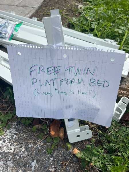 Free metal white twin platform bed. All pieces included! It's about 10 inches tall.