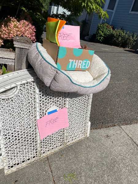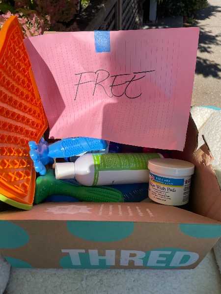 small dog bed, dog/baby gate and some miscellaneous supplies (lick mats, shampoo, dental brushes, comb for long haired dogs) They will be outside until 7pm today (Sept 17th) and if not gone again on Friday Sept 19th. After that they will be donated.