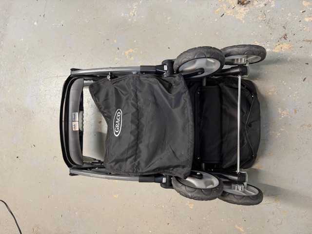 A Graco child's car seat carrier for use carrying the child on the sidewalk.  Collapses easily for storage in trunk or elsewhere. Perfect condition but no longer needed.