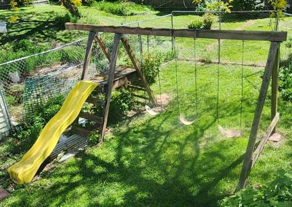 Cedar swing set with slide.  Still in good usable condition, the slide has a few scratches.  Will need to take it apart, there's 4-6 bolts that need a ratchet and will need a truck to haul it because of the long pieces.