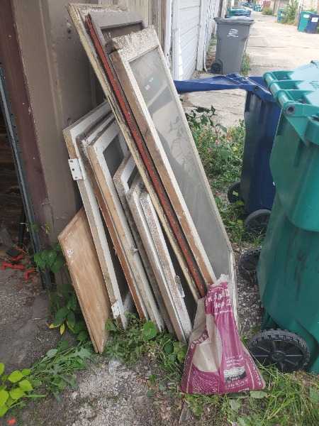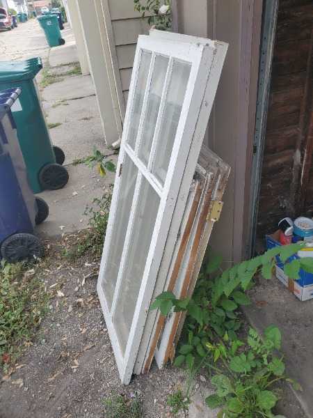 Free wood windows in alley. Variety of sizes and styles. Just drive down the alley just east of Cuyler. Or message me for the address.