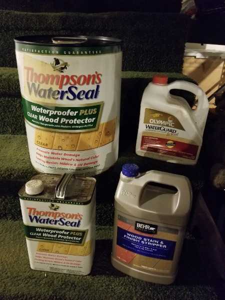 Get your deck sealed before Winter.  I no longer need these so free for the taking.  The stripper and Olympic sealer are very full.  The large Thompsons feels about half way full and the smaller one is a little under half full.