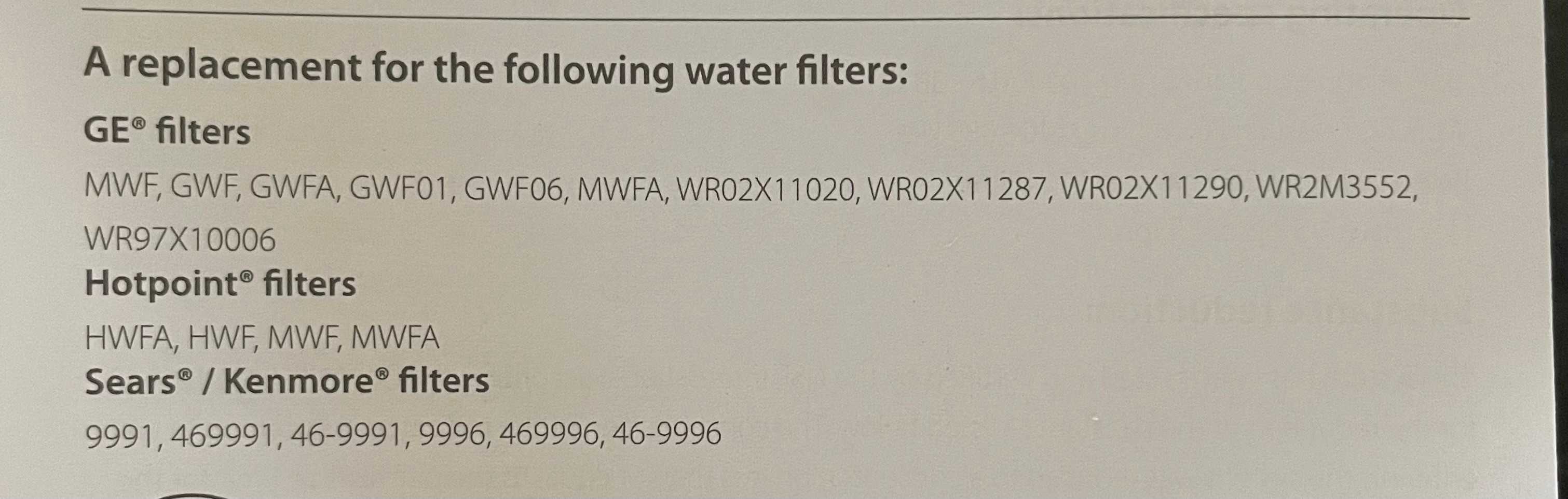 We have replaced our refrigerator and can no longer use these two water filters (I had bought a box of three and used only one). I bought them for a GE Profile refrigerator, but they fit others (other GEs, Hotpoint, Sears/Kenmore).