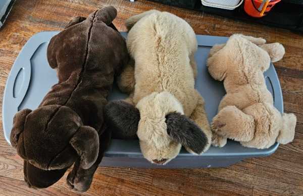 3 big plush dogs, take all or take one. I can leave in front for easy pickup.