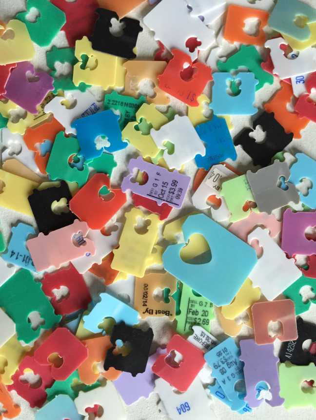 Looking for collections of the plastic bread tabs/clips that close bags of bread, veggies, etc. Using them for an art project! Willing to pick them up if needed. [Example image from Google]