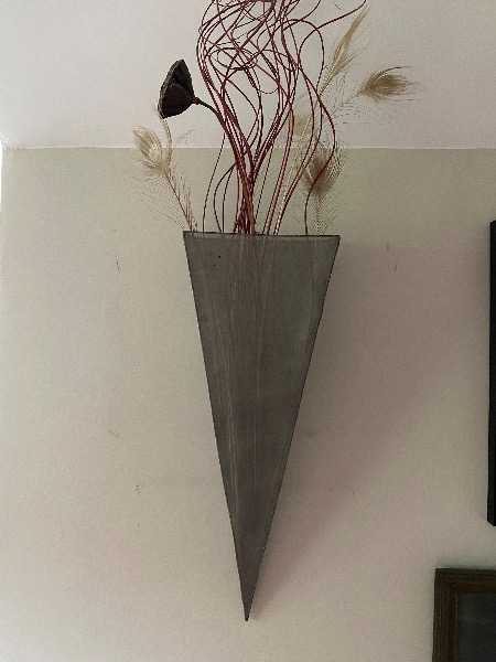 Metal mesh sconce perfect for dried flower arrangements. Measures appox. 28" from rim to tip.