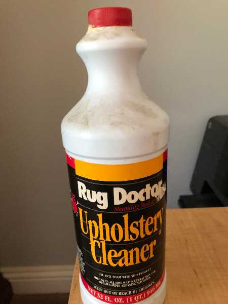 Rug Doctor uphostery cleaner. – one quart bottle that's about half full. Used with Rug Doctor steam cleaning machines that can be rented at Safeway, Lucky, and Walmart stores.h