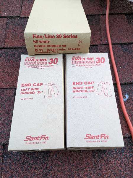 Three new boxes and plenty of used lengths of painted steel covers (and transitions) for hot water heat piping.