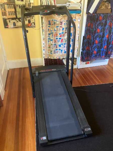 A Proform J4 treadmill. All parts work. Has wheels and is foldable. We've moved it to the porch! If you can use it, reach out. We'd love for it to find a good home.
