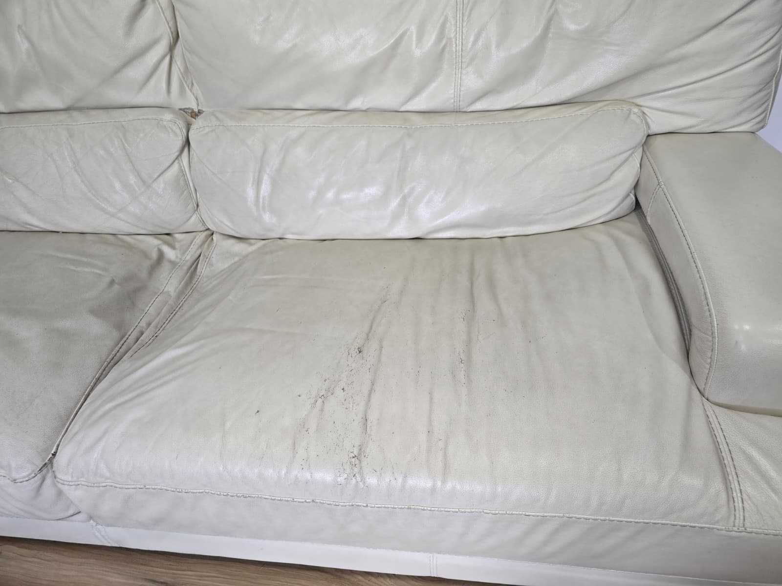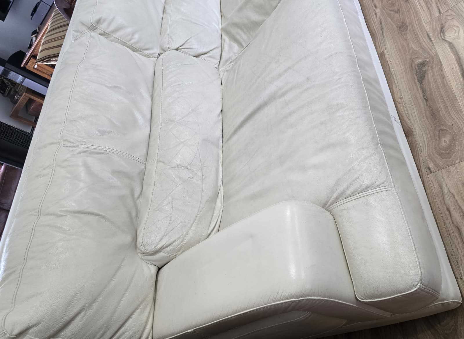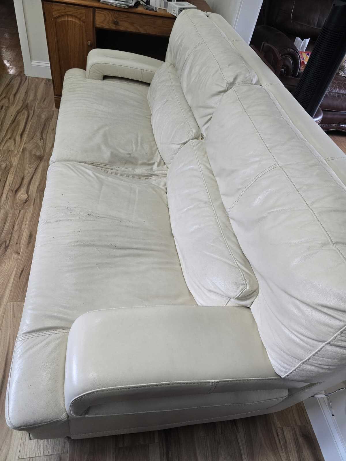 About 80" wide leather sofa, in a reasonable condition.. It is heavy so will need two people to move out of the house...