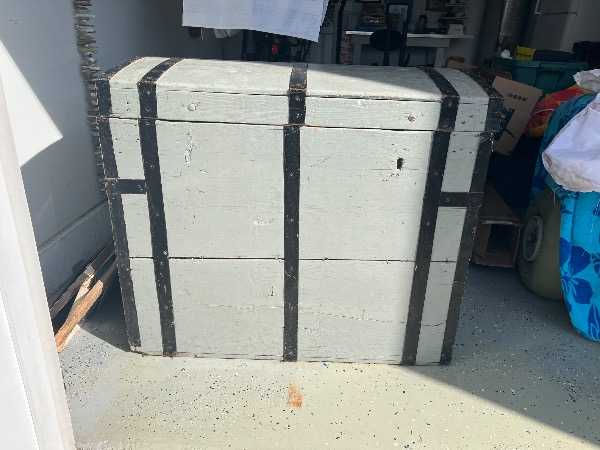 Vintage steamer trunk. 32" tall. 37" long by 25" wide