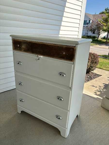 Needs some TLC but well made HEAVY solid wood dresser made by Tate Furniture in High Point NC. Painted white but the top drawers has been sanded to the wood. Porch pick up. at 4525 Redwood Vine Dr. Will need two people to move and maneuver down two stairs.