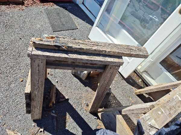 Well used work Horses. You can replace the top piece of wood on one of them and your good to go. Leave your mobile so I can text the address.