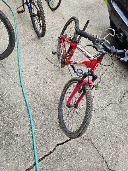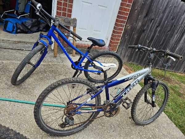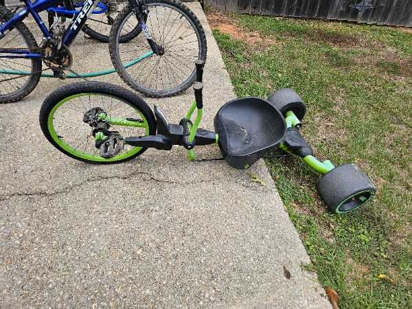 Three bikes,  1 green machine. 2 bikes need new tires/or intertube, 1 needs seat and tires,