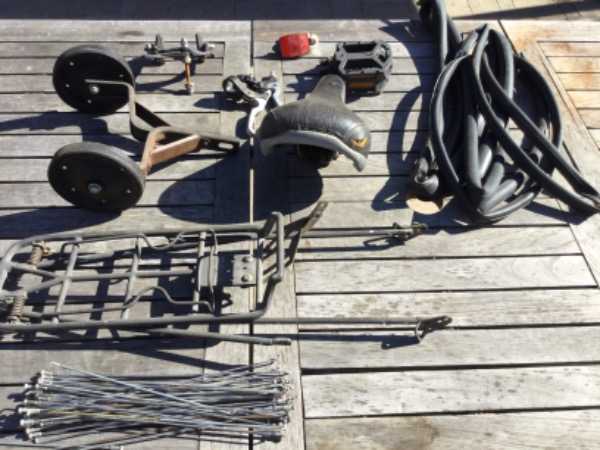 I have some bike parts that might interest you. Bicycle seat, inner tubes (700cc and 27"), rear rack, spokes, brake parts, ball bearings, rear reflector, etc.