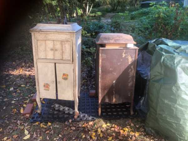 2 tall wood vitrola cabinets with player parts.  Both in poor condition.  I hoped to restore them but hasn't happened.