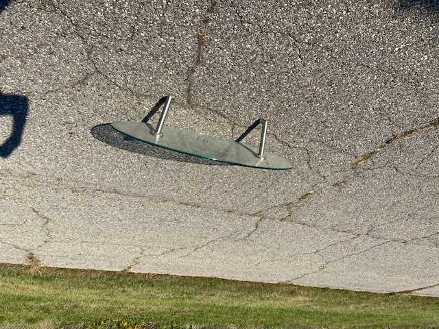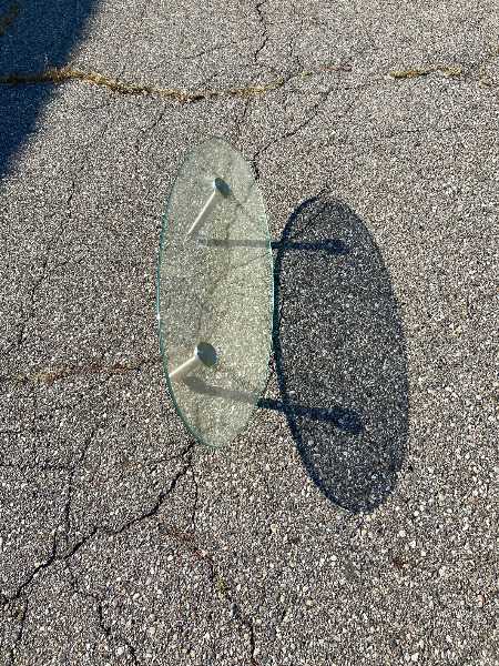 Temperwd Glass Table top.  Base is Broken and missing. Beautiful Piece of Glass.  Would make a very nice table for a craftsman project.