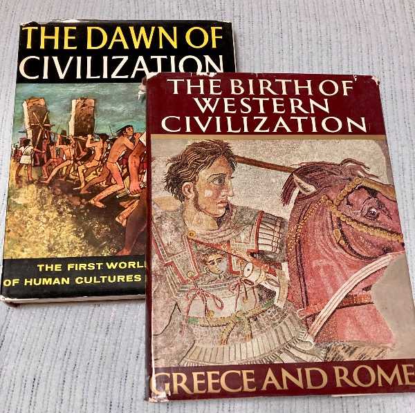 The Dawn of Civilization and The Birth of Western Civilization--well read but in good shape.