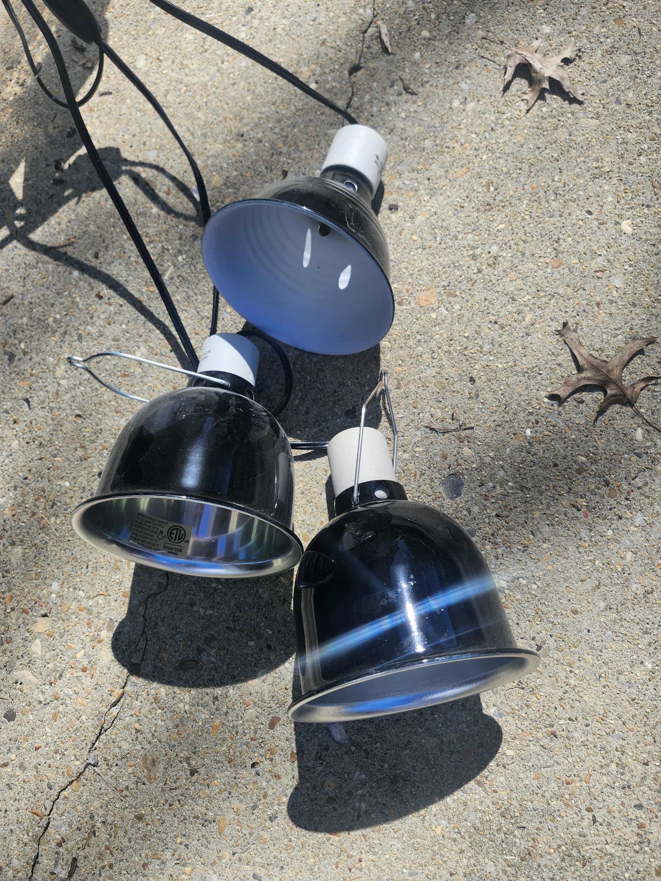 Three heating lamps for a pet reptile cage. We used them for our bearded dragon.