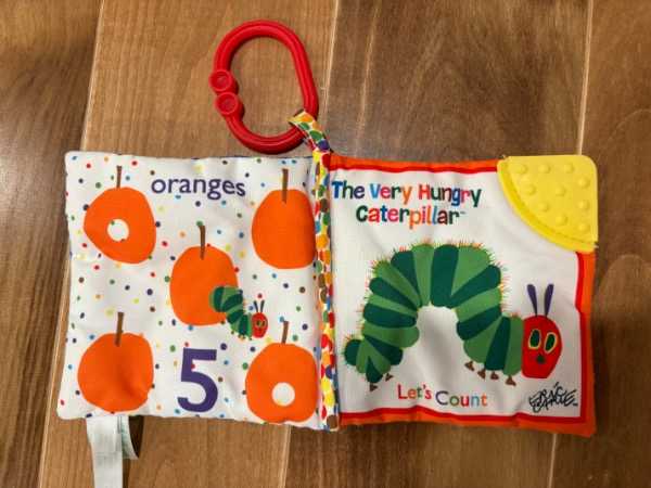 Inspired by the classic book, The Very Hungry Caterpillar™, this clip-on book all about numbers will become your baby’s favorite! The book has great activity features on each page, crinkle texture inside, a teether on the cover, a squeaker, and a hanging clip so your baby can have fun and learn anywhere!