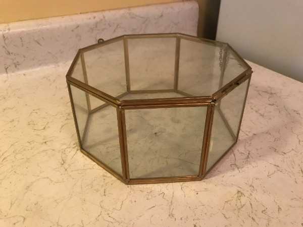 3. a glass octagonal container with hinged lid, 16cm across