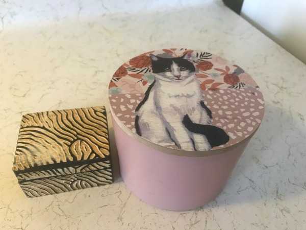 2. A pink cat-themed jar (formerly a scented candle jar), 8cm in height, 11cm in diameter
