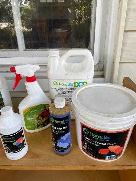 FloraLife Crystal Clear plant food, Quick Dip, Crowning Glory, Finishing Touch, Disinfectant/Cleaner