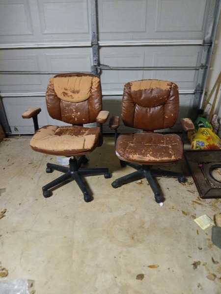 I have two rolling adjustable desk chairs where the vinyl has peeled off in places. The frame and the base with rollers are in great shape though.