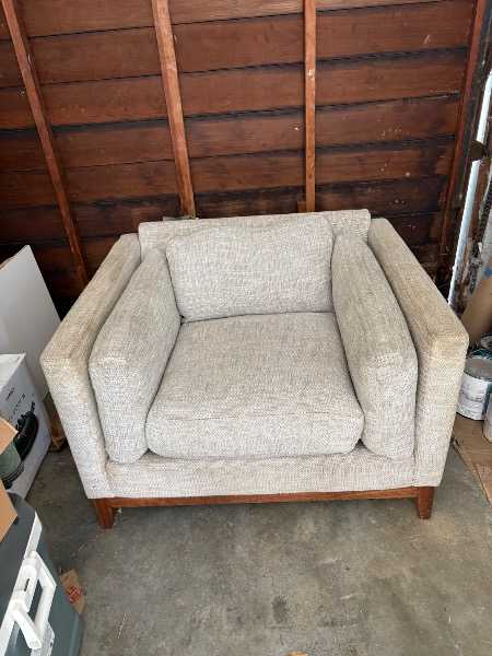 I got this chair from a Buy Nothing group two years ago. I washed all the covers and used a Little Green Machine cleaner on it. Turns out it doesn’t really fit in my living room. And it still could use more cleaning. It is very comfortable and could be great for a play room or college apartment. Maybe put a throw or slipcover on it?