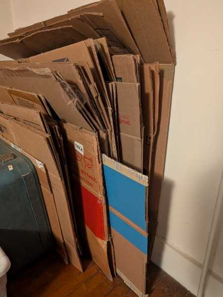 I recently moved and have about 30 boxes and packing material. The boxes are mostly small and medium, with some large. There are two large boxes worth of paper and bubble wrap. Boxes are all broken down. You'll need a hatchback or truck to take it all. I didn't have any takers from the Pittsfield group, so I'm broadening the offer. I actually got these from a Freecycler in Northampton a month or two ago.