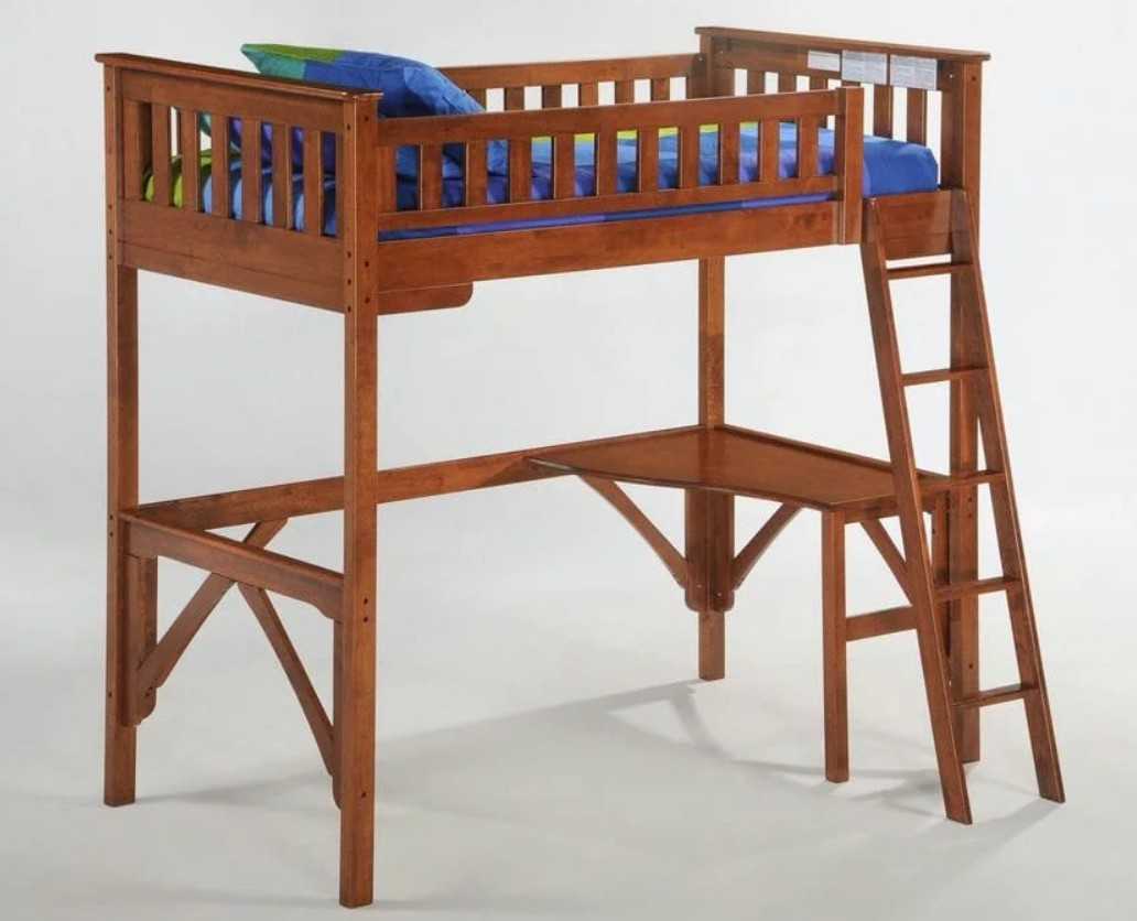 We have a lovely and tall twin loft bed that is entirely disassembled. It's called Ginger by Night & Day - full details and photos from the manufacturer are here: https://nightanddayfurniture.com/closeouts/ginger-twin-loft-bunk/. It's quite tall (approx. 6 ft to the top of the mattress), so best if you have ceilings that are 9 feet or higher. (You could definitely saw off several inches from the bottom if you're good at that.) See full dimensions here: https://nightanddayfurniture.com/wp-content/uploads/2025/05/Ginger-Loft-Bunk-Dimensions.pdf. Note: Our version does not have the little desktop/shelf shown in the manufacturer's photo, but it has everything else that is shown. Sorry I don't have photos of it installed in our house. It's in excellent condition, just a little dusty from sitting in our basement for a few years since our kid got too big. It's very solid, excellent quality (we paid a lot for it!), and a great solution for a child or a small room. To pick it up from our house, you will need a car or truck that can handle segments that are 83 inches (7 feet) in length. They're not especially wide, but they are long.