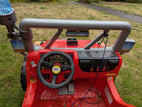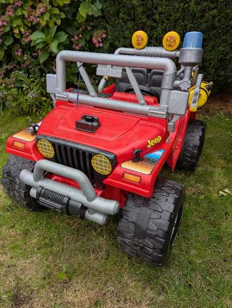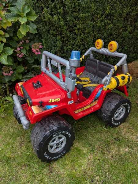Red fire-fighter jeep, just a few years old, should run if a new charger is purchased