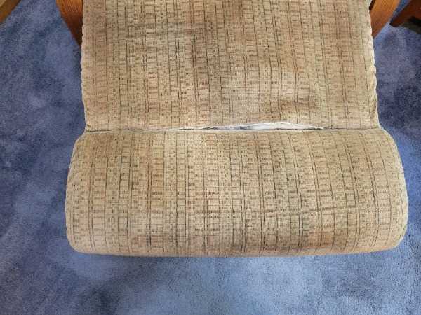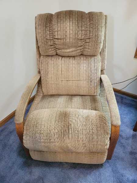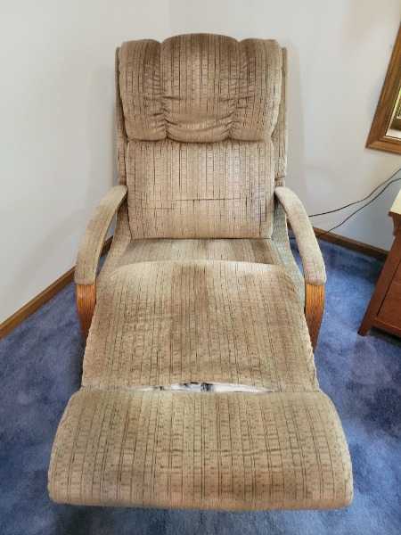 Lazyboy swivel, rocker recliner. Better for a shorter person. Manual, still works OK. Seam has pulled away on the footrest (not torn) - see pic. Cat friendly home.