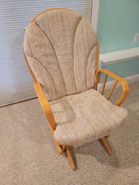 Dutailier Glider Rocker, good condition. The canvas support under the seat needs to be restapled.