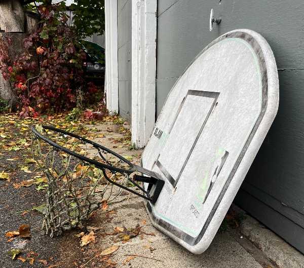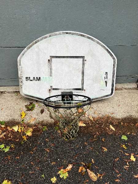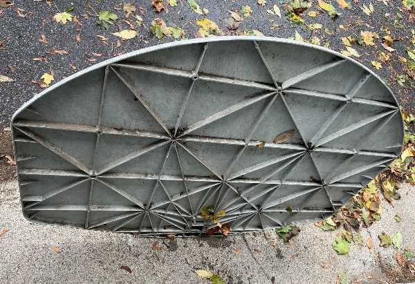4' wide x 3' high. Just took it down from over our garage door. First come, first served.