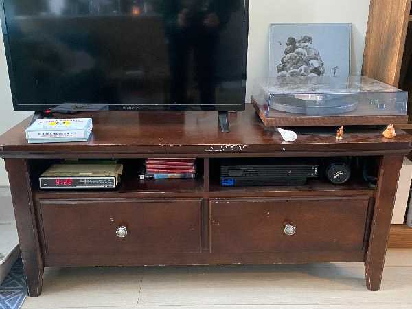 Solid with a little cosmetic damage, just need something smaller, drawers are pretty spacious