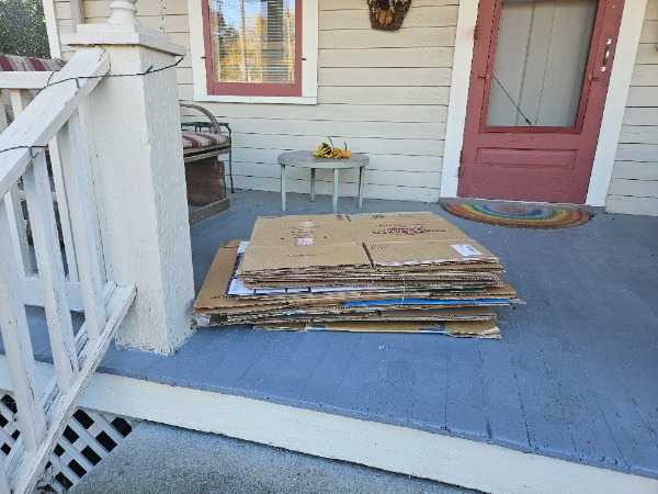 Many cardboard moving boxes, collapsed. All reasonably sized but not identical. For porch pickup.