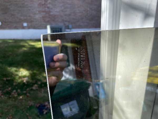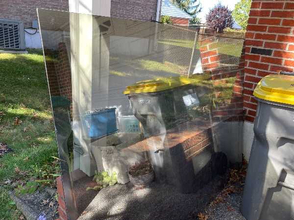 Large tinted sheet of glass. 6' 7 1/2" X 4' 9". stamp on glass says Sunglas heat treated. It is pretty reflective but is not a mirror. Could be used for a workout room.