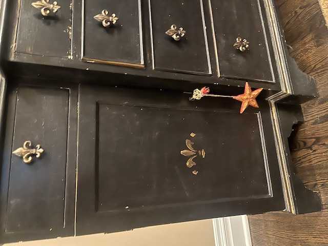 (Imperfectly) hand painted breakfront. 54 inches wide , 16 inches deep, 6 feet tall.