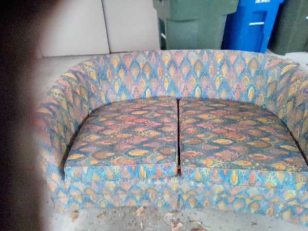 Love seat, very clean owner is moving and left it. Rest of cushions in bag and also has a plastic support support that assembles to add firmness easy carport pick. Bulk pickup has been called, so if you want it grab it soon