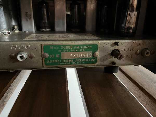 Sherwood Model S-3000 mono FM tuner, from late 1950s or early 1960s.  Used, needs repair.