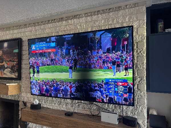 The screen has a shadow going down one side. It started more in the middle (as shown) but later moved more to the right. Not sure if it can be fixed, but otherwise works fine. Comes with remote and power cord. Does not have a base so it would have to be mounted or purchase a new base. Located in The Greens near Mercy