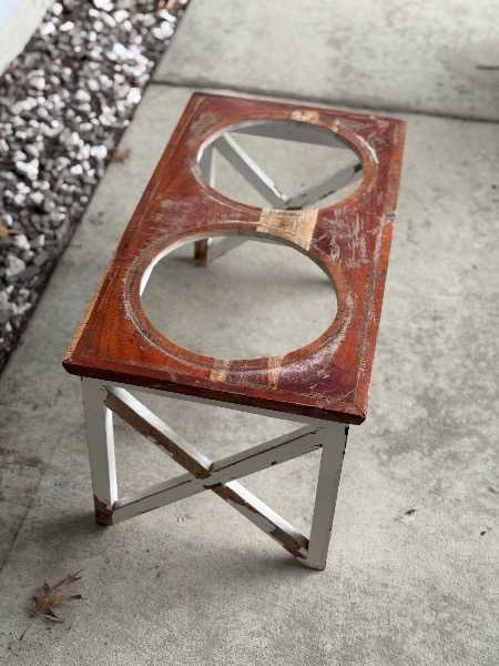 For large dogs. Does not come with dishes. Some wear and tear, see pics. Measures approx 26.75 in long x 4.5 in wide x 13.5 in high