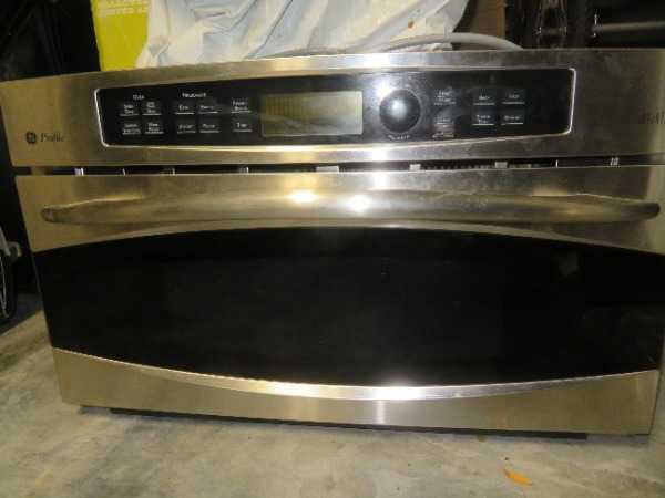 Microwave and convection oven combination; cooking function is fine; display does not work; display board has been replaced, but probably needs power board or one other electronic board replaced; comes with paperwork and accessories. (This is a wall unit, not countertop nor over stove.)