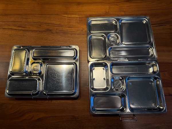 Two PlanetBox metal lunch boxes in great shape. Planet Box sells magnets that go on the front.
