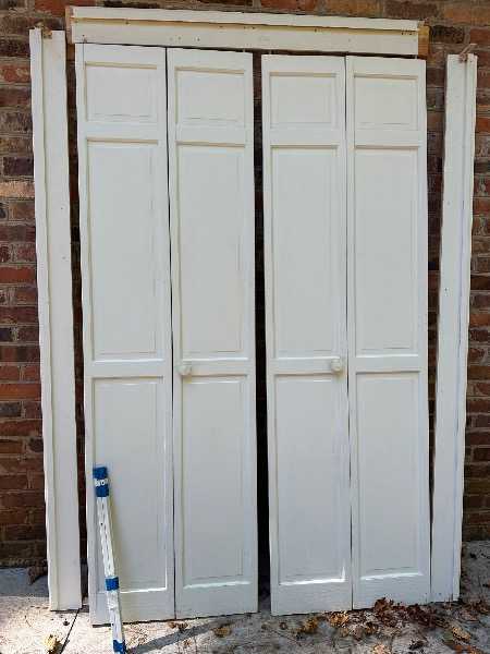 Interior Bifold door - 4 panels, Total door: width 48 inches. Height 79".  Fits rough opening 50-1/2 x 81-1/2. All parts are here including jambs, brackets and track. We remodeled.
