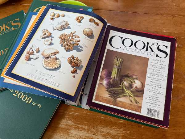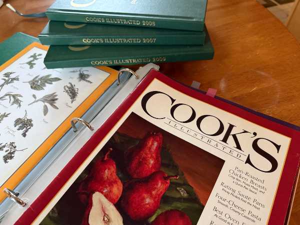 This listing is for a 3-ring binder of approximately 12 issues of Cooks Illustrated from 2005-2006 and 3 bound annual collections - 2007, 2008, 2009.