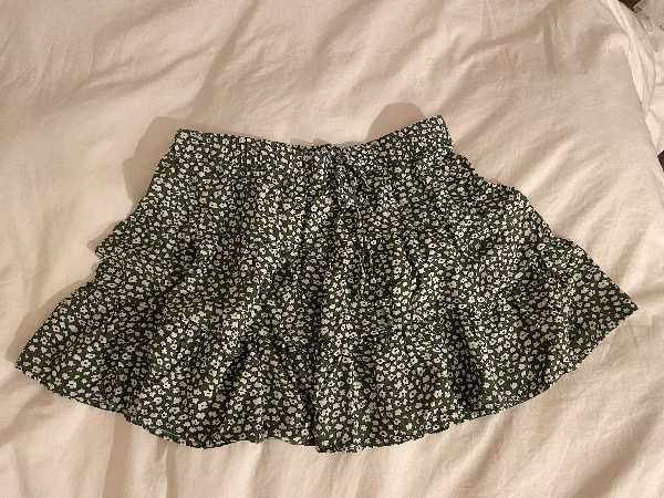 Green Short Ruffled Skirt - Ditsy Floral (size M)