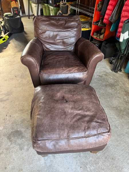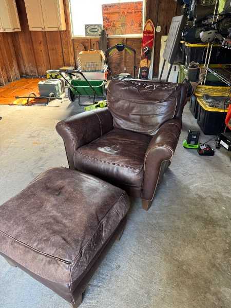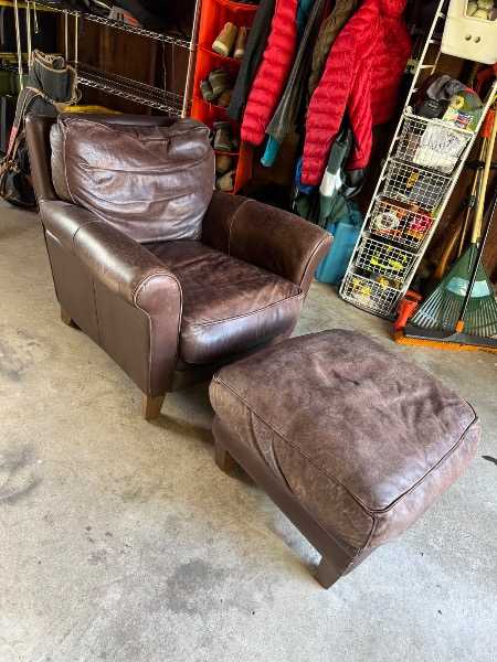 Awesome Ashley brown leather chair & ottoman with several years of wear but, still comfy. Chair has wear marks and is broken in but, would be great for the right owner.